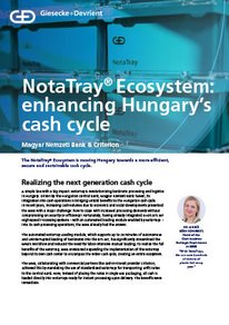 In the NotaTray® system, Giesecke+Devrient has transferred the basic principles behind the freight container to the cash cycle, achieving increased automation through comprehensive standardization. At the core of the innovative solution is a green plastic box: the NotaTray®. In combination with the NotaTray® Loading module, the banknote container helps to automate processes for sorting and quality assurance in cash centers and beyond, in collaboration with partners within the cash cycle.