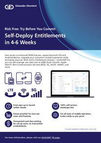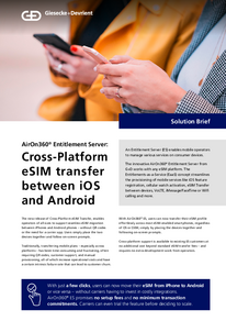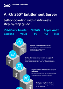 AirOn360® ES from Giesecke+Devrient (G+D) is a game-changing entitlements solution available to all MNOs and MVNOs, that ensures a superior digital experience for iOS and Android customers. With this solution, every mobile operator, regardless of size, can provide subscriber access to key features, while paving the way to an eSIM transition.