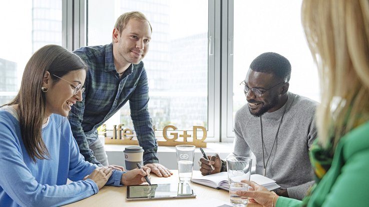 Wondering where you’d best fit in at G+D? Check out our functional areas. We’re a global company and each team stretches around the world, so you’ll find it a really stimulating working environment. Especially as we have some of the best brains in the business here at G+D!