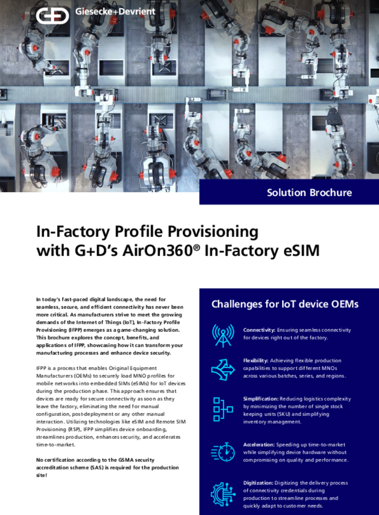 In-Factory Profile Provisioning with G+D’s AirOn360® In-Factory eSIM