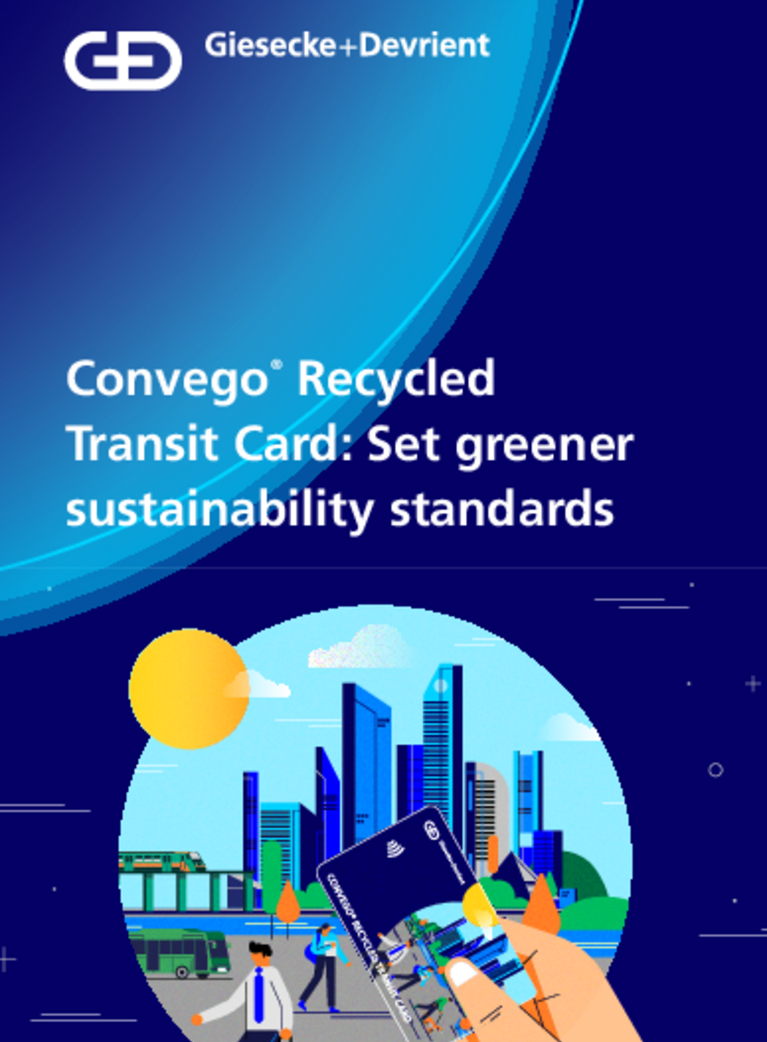 With Convego® Recycled, Giesecke+Devrient (G+D) offers transit authorities another piece of the green puzzle: a fully recycled option for transit passes and tickets. The Eco Transitcard repurposes 100% discarded PVC to make a recycled card, alleviating the waste burden on our planet and making our cities greener and more pleasant places to live.